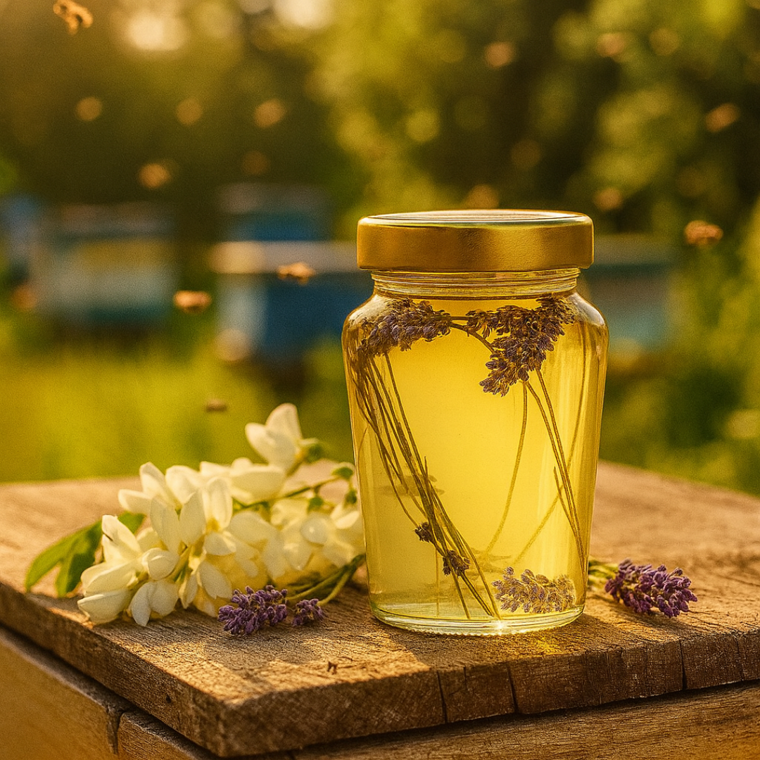 A collection of AI-generated product photos that showcase a premium jar of honey infused with lavender blossoms. This series combines natural textures, golden light, and elegant styling, highlighting the harmony between honey’s warm glow and the delicate charm of lavender. The set includes: * Hero shots of the jar with lavender inside; * Close-up macro views emphasizing natural details; * Lifestyle compositions with bread, tea, and croissants; * Outdoor scenes with lavender fields and beehives. Warm golden-hour lighting that conveys freshness and authenticity The project demonstrates how AI can create high-end product photography for food and lifestyle brands, perfect for e-commerce, packaging, and storytelling visuals.